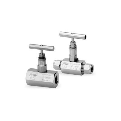 Pressure rating to 10,000 psi (689 bar) at 100°F (38°C). Temperature rating from -65°F to 450°F (-54°C to 232°C) with standard PTFE packing, and up to 600°F (315°C) with optional PEEK packing. Metal seal body-to-bonnet. Rugged body is machined from barstock with straight pattern standard, angled pattern optional. Size range from 1/4″ thru 3/4″ tubing and pipe. Compact design with orifice from 0.125″ to 0.2″ (3.2mm to 5.0mm). Variety of stem tips includes non-rotating vee tip standard, optional ball tip available. Variety of end connections include Hy-Lok tube fittings, male/female NPT and ISO threads. Body Material is available is 316 stainless steel standard.