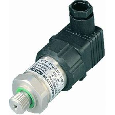 Customer-specific OEM product for large series (For ordering quantities starting with 50 units). The electronic pressure switch EDS 410, on the basis of the pressure switch series EDS 4000, was specially developed for use in series machines. The EDS 410 is available with 1 or 2 transistor switching outputs (PNP) which can be optionally defined with either an opener or a closer function. The switching and reset points of the EDS 410 are set permanently ex-works in accordance with customer specifications.