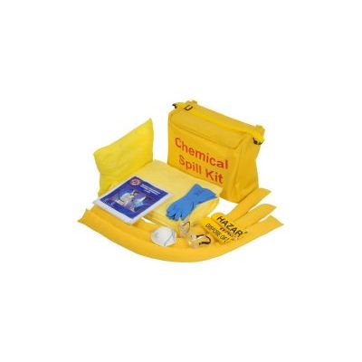 Chemical Spill Kit designated as yellow in colour, designed to absorb aggressive and non-aggressive liquids such as acids, caustics, oil coolants, solvents, water and solutions. Fast acting with high absorbency rates for larger chemical spills down to bench top laboratory situations. Contents include Kit Shoulder Bag, 2 Socks, 25 Pads, 1 Disposal Bag, Drain Plug Cover and 1 Instructions & Contents Card.