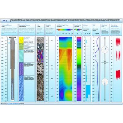 Data visualization software for wells and boreholes. Program includes functionality for variable data types rendering, such as technical scheme of well, geological scheme, numerical continuous measurements, tectonic and structural data or images. All these data can be simultaneously displayed in one Log Plot. In addition, program includes features to display well positions on multiple map types.