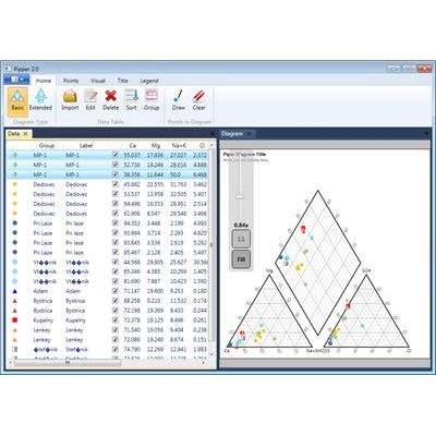 Geochemical data analysis in Piper diagram. Comprehensive tool for creating professional Piper diagram. The program is based on vector graphic rendering and you can visually edit and adjust all the properties. In also contains many new features that you will not find anywhere else. Program also includes extended version of Piper diagram.