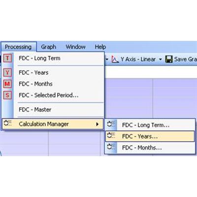 A tool from the older generation that allows calculating and rendering of flow duration curves. For example, these curves are often used in the assessment of hydrological drought. Flow duration curves can be created from the entire imported time series or from defined parts, such as annual or monthly segments.