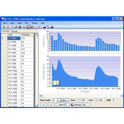 Unique tool for recession curves analysis of springs and rivers. The program allows you to quickly separate individual recession curves from a hydrograph, and then analyze the individual recession curves or the master recession curve. To assemble the master recession curve, you can use a manual method or the new method based on a hybrid genetic algorithm.