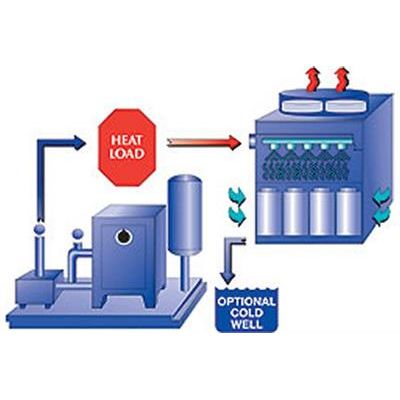 A cost-efficient way to maintain consistent equipment cooling temperatures with varying heat loads and environmental conditions. All water-cooled heat-producing industrial processes and equipment will benefit from the installation of this thermostatically controlled heavy-duty (CE) system. That`s because it removes heavy heat loads from machines and processes by supplying coolant economically within 10ºF of ambient wet bulb temperatures. Continuously, efficiently and with minimum maintenance.