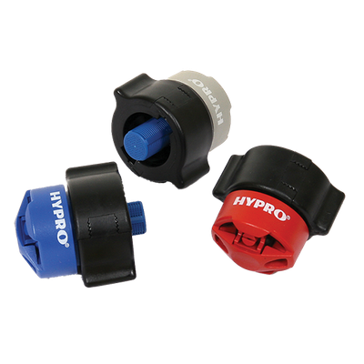 Pentair Hypro GuardianAIR Twin spray nozzles are the best choice for high-coverage applications where on-target spray delivery is important. They are ideal for low crops with complex canopies, such as vegetables, where thorough coverage of the target and protection of the surroundings are of high importance. High-coverage forward and rear-facing fans provide coverage on both sides of target. FastCap complete includes nozzle, cap, gasket and is available with or without a filter. Integrated strainers are matched to the nozzle size to prevent over-straining or plugging.