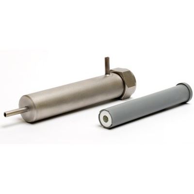 The 617 replaceable pH cartridge is constructed from PVDF, with the electrode fully encapsulated for outstanding reliability on applications to 300 PSIG. It fits on a threaded retraction rod to move through the ball valve in/out of the process isolation chamber.