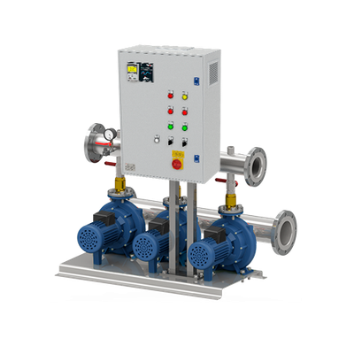 CENTRIMAX pressurization units are constructed with standardized horizontal axis centrifugal electric pumps in a monobloc design, driven by IE2 three-phase electric motors. The units come in configurations of two to three pumps, designed for continuous operation in environments needing high flow rates and pressures. These units are suitable for civil, industrial, and agricultural applications. They are powered by inverters or electronic control units and offer versions operated by pressure switches or transducers. Additionally, they can operate with pressostatic or constant pressure modes. For unique applications, such as using osmotized or deionized water, specific technical details should be communicated to the technical department.