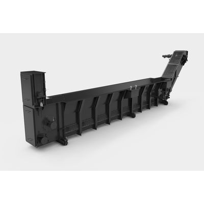 The IEM chain belt conveyors are used for receiving and feeding medium to heavy bulk or general cargo. The chain belt conveyor consists of a transport belt with screwed steel catches, mounted on cylindrical profiles which are located between two bush conveyor chains. The drive sprockets are connected by a shaft and are driven by a geared motor. The IEM chain belt conveyor is available in multiple kinked versions.