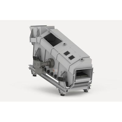 VARIOMAT doubledeck screen for the recycling industry. The proven design of the upper deck combined with the new resonance system VARIOMAT of the lower deck provide for an extraordinary double deck screen. The screen is driven by the IFE unbalanced shaft and the flexible screen mats of the lower deck are agitated in resonance to the screen frame. This flip-flop design allows for non-clogging screening.