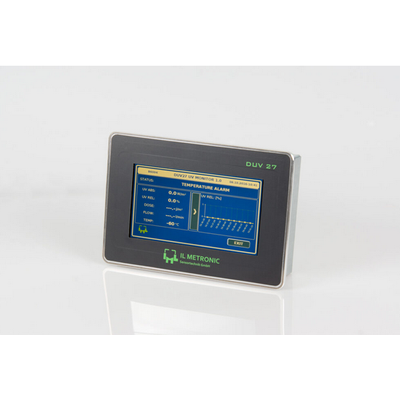 The UV Monitor DUV27 is used in conjunction with UV probes to directly display and monitor the irradiance of UV radiation sources, especially for UV disinfection systems. Furthermore, the device concept allows the connection of additional sensors, e.g. for temperature, turbidity or flow and the customer-specific integration into the monitoring and alarm function. The monitors have a touch screen color display for display and operation.