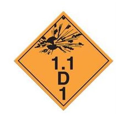 The class 1.1D explosives placards are displayed on vehicles and tanks to identify the risk of products being transported. We manufacture our entire placard line to meet Transport Canada guidelines and offer them in your choice of material. Check with local compliance authorities to determine correct product for your application. All placards are 10-3/4” x 10-3/4”.