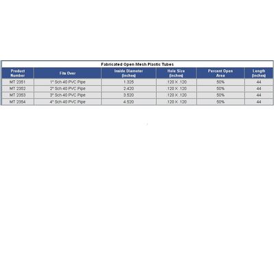 Open mesh plastic filter tubes are fabricated to fit over standard PVC pipes for standpipe filter applications in tanks and ponds. Open mesh plastic standpipe tubes are used as aeration tubing by hatcheries and fisheries in fish tanks and aquaculture pond applications. Fabricated from rugged high-density polyethylene net. Carbon black additive for extended life in use. Fits over standard PVC pipes.