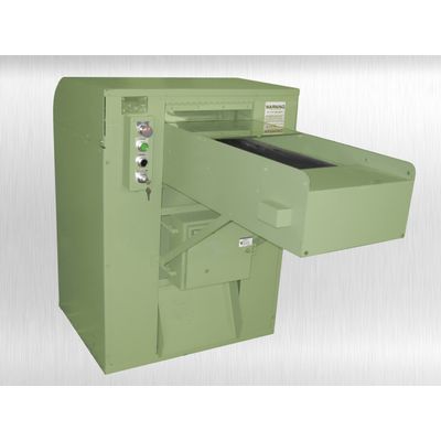 Slitter, Conveyor Fed, Variable width. Description: Slitter, Conveyor Fed, Variable width. Feed opening: 20". Particle Size: 1/8" - 1/4" -3/8" - 1/2" -1". Security Level: 2, 3. HP: 15.