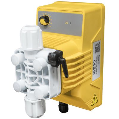 Analogue electromagnetic dosing pump with constant dosing, with flow rate adjustment via knob on the front panel.