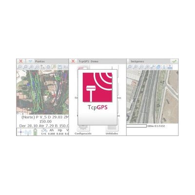 This field software, installed in the total station itself or in a data collector with Windows operating system, allows the user to survey and set out with a wide range of conventional, motorized or robotic stations, connected through serial cable or Bluetooth. The program has options for all kinds of surveys and stake out (roads, railways, power lines, pipes, etc.). Orthoimages, DXF files or web map services can be used as a base map. You can add to the project horizontal and vertical alignments, profiles, cross sections and superelevations. TcpET has options for staking out by station and displacement, station and code, slope control, and many more.