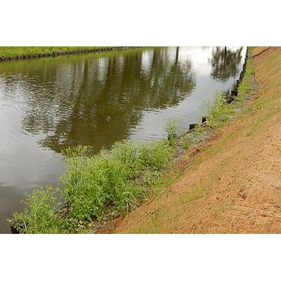 There are different types of the classic erosion control blanket made of coir in the iGGmat coir product series. They all have a fiber layer of coir and are stitched either on one or both sides with a backing made of PP-netting or jute fabric, as well as a PP- or jute-fiber. All iGGmat coir products can also be supplied as seeded blankets. In this case a carrying paper with seeds is stitched to the fiber cover. iGGmat coir is used on areas at risk of erosion with up to 40° slope (1:1.2) for temporary erosion control. The lifetime of the iGGmat coir is up to 36 months. It depends on the conditions of the location, the soil, water and climatic conditions as well as the risk of erosion on-site. iGGmat coir products are up to 100 % biodegradable.