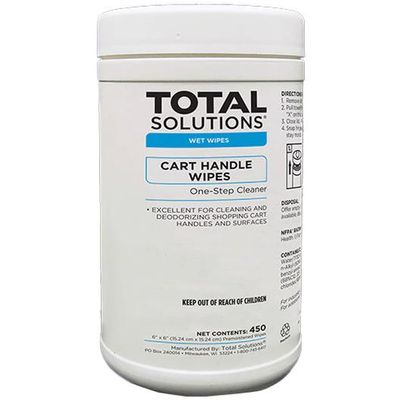 Shopping Cart Handle Wipes/All-Surface Cleaning Wipes are specially formulated with a quat-based formula to clean and deodorize nearly any surface, anywhere. These shopping cart handle wipes are ideal for wiping away germs and odors from shopping cart handles, as well as gym and fitness equipment and many other surfaces. An ideal alternative to potentially harmful and ineffective disinfectant or sanitizing wipes in store environments. Made from biodegradable cellulose fabric.