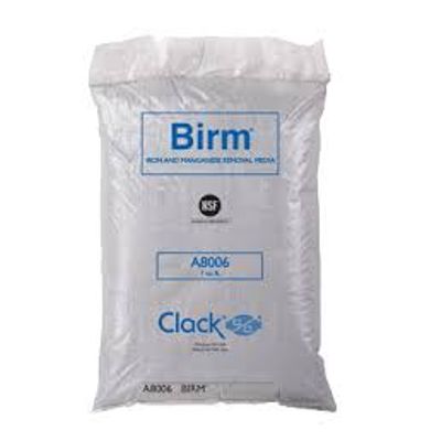 BirmĀ® is an efficient and economical media for the reduction of dissolved iron and manganese compounds from raw water supplies. It may be used in either gravity fed or pressurized water treatment systems. Birm acts as an insoluble catalyst to enhance the reaction between dissolved oxygen (D.O.) and the iron compounds. In ground waters the dissolved iron is usually in the ferrous bicarbonate state due to the excess of free carbon dioxide and is not filterable. Birm, acting as a catalyst between the oxygen and the soluble iron compounds, enhances