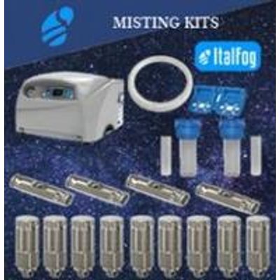 Every range of misting kits utilizes 1000 psi (or 70 Bar) Italfog pumps, different length of poly/copper/stainless steel tubing, a filter assembly with filter cartridge, nozzles, fans and all the needed fittings to connect the line.
