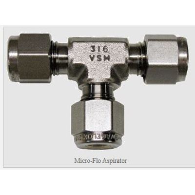 Introducing the new ultra-efficient, low flow aspirator that surpasses the performance of any standard aspirator. Conveniently incorporated into stainless steel tube fitting Tee’s, the Micro-Flo is easily integrated, leak-free, into an analyzer or monitor system. Remote sampling, drawing low pressure process streams and sampling slightly negative pressure process or stack gases is a ‘breeze’ with the Micro-Flo system. These ultra-efficient aspirators use