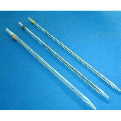 N-058 Pipettes, Measuring, Graduated, Mohr type, RELIGLAS. Accuracy as per Class A of ISO 835 with NABL Certificate. Color coded. (These pipettes are graduated for the delivery from zero mark at top to the last graduation mark.) Pipette tips are machine made.