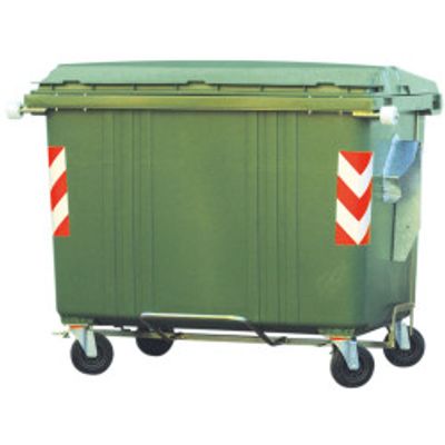 Body and lid of the container are one piece injection moulded of High Density Polyethylene (HDPE).The raw material is of high quality, resistant to acids, alkalis, detergents, temperature changes and the combined action of water and UV rays.Smooth internal surface.Four solid rubber tyre wheels (200 mm diameter) easily to replace and maintain. Foot brakes on two front wheels. All wheels full 360° swivelling.Provided with a drainage plug made of HDPE to discharge the water used for washing and cleaning.Container body has four side handles and two rear grab handles for manoeuvrability and two further side handles also available as optional. The hinged lid (the hinges are HDPE made) has one handle at the front and more recess for opening. The lid, when closed, prevents rainwater from entering the container.GS mark (issued by LGA Nuremberg, Germany) showing safety and EN compliance testing.