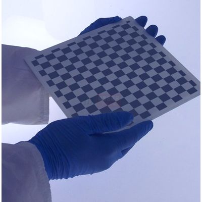 BASE MATERIAL:Available on Soda Lime glass with a low reflective chrome pattern etched onto the surface. The chrome material, when viewed from the top surface, will have an oxide layer (CrO) to reduce light reflections. This product is also available on a quartz substrate if required, and other materials as a special order product. See SPECIFICATIONS for further technical details.