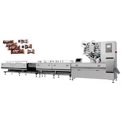 Scope of application: Automatic pillow packaging for small (round, square, small rectangular) chocolate products Supporting language: A, Chinese B, English. production process: Pouring line → finishing → conveying → arranging → pillow packaging.