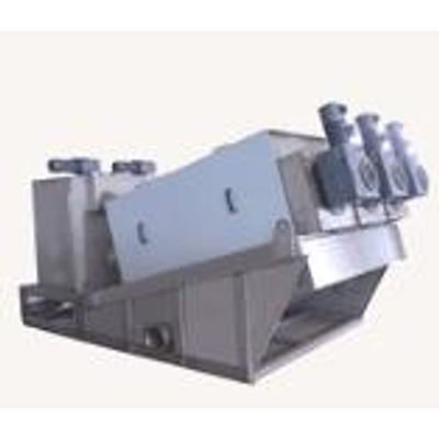 Screw Press Sludge Dewatering Machine, it`s clog-free and can reduce the sedimentation tank and sludge thickening tank, saving the cost of sewage plant construction. Using screw and the moving rings to clean itself as clog-free structure, and controlled by the PLC automatically, it`s a new technology that can replace the traditional filter press like belt press and frame press, the screw speed is very low, so it cost low power and water consumption in contrast to the centrifuge, it is a cutting edge sludge dewatering machine.