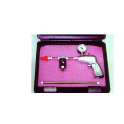 A simple test instrument used by manufacturers, repairmen, users of condensers & heat exchangers, to find leaking tubes. Seal the far end of each tube with a rubber tube plug. Push the rubber nozzle into the tube. If the tube does not hold vacuum, the tube is defective. One person does the job in seconds using approx. 90 PSI dry clean air.