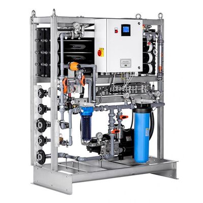 Reverse osmosis desalination is among the finest levels of filtration available. The RO membrane generally acts as a barrier to all dissolved salts and inorganic molecules. Water molecules, on the other hand, pass freely through the membrane creating a purified product stream. Rejection of dissolved salts is typically 98% depending on factors such as membrane type, feed composition, temperature, and system design. Capacity is 15T or 30T potable water per day. Continuously monitoring and automatically divert the product flow depending on salinity value. Full production with a temperature between 6-35C° and TDS 35 000ppm (salinity). Unique design with top quality HDMI interface. User friendly touch screen and prepared for communication to ECR/AIS via PROFIbus, CANbus, MODbus and more.