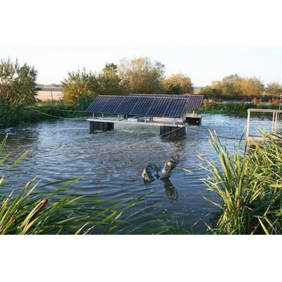 The SOLAIRMAX is a surface aerator that works with solar energy. It is meant for lagoons, Waste Water Treatment Plants, lakes, ponds. The SOLAIRMAX is designed as an answer to the fossil energies reduction and to the need of sustainable consumptions development. The SOLAIRMAX is the ideal oxygen production installation for the biological aquatic aerobic systems. The oxygen that is dissolved in the water is essential for the development of various fauna and flora. The good mixing of water helps the exchanges between oxygen and living organisms. The SOLAIRMAX is an optimised by-product of the high efficiency AIRMAX surface aerator technology.