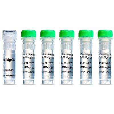The GoldStar® Mix kit contains all PCR reaction componants except the primers and the template. It is a ready-to-use formulation at 2x concentration. The kit contains sufficient reagents for 200 PCR reactions of 50 µl and an additional tube of MgCl2 to adjust the concentration if required. Sample contains enough reagents for 40 reactions.