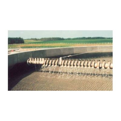 The Biofilter Distributor Type KD 17 is specially designed for even distribution of water over a biofilter. Water is led through the central pipe and gravitates to the four rotating distribution arms. Here the water is led out of specially designed outlet orifices causing the Biofilter Distributor to rotate. It is possible to adjust rotation speed by turning some of the outlet orifices opposite the rotating direction.