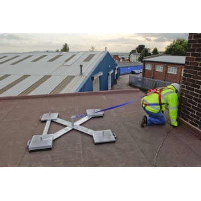 WEIGHTANKA is a mobile, deadweight anchor system for use on roofs up to 5 degree pitch. The quick-to-assemble system features a central attachment point which raises the height where the arrest force is applied.