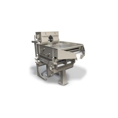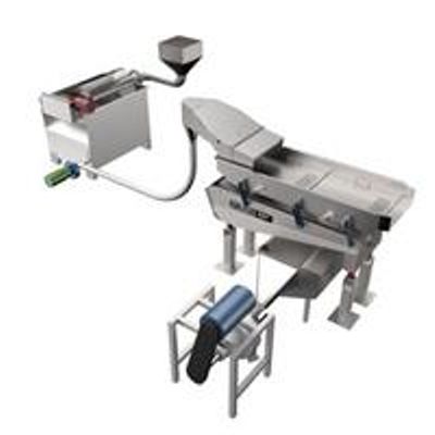 The Small Piece Remover is an open-bed design machine with integral frame and endless sizing belt, used to separate smaller pieces of product from line flow. Running at a right angle to product flow, the sizing belt forms a trough where product travels through the machine. The rolling cross-flow movement gently mixes and encourages product transfer. The Small Piece Remover features consistent and accurate length sizing for field proven 98% effectiveness. This streamlined design is more efficient than rotary style separators. It features self-cleaning pockets that eliminate the need for high pressure water and brush system to continuously clean pockets. Its simple open framework dramatically reduces sanitation and service.