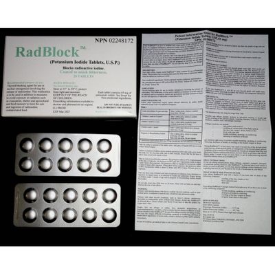 2 RadBlock 20 Potassium Iodide & 2 Sirad Radiation indication card+ 1 N95 Masks. Due to the heightened demand for our RadBlock potassium Iodide , we are rationing our limited supply to one bundle per customer We are the manufacturer and will have our new batch of one million 65mg. tabletsready in 6 weeks.