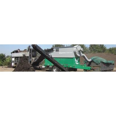 The mobile Hurrikan windsifters allow effective separation of plastic foils from over-sized screened particles. The patented “pressure-suction“ process enables an effective separation of light fraction from screening residues. In the first step, material is separated by an air knife. In the second step, the lightweight material is drawn off by a powerful suction blower. The suction performance is adjustable to material by variation of blower speed, blower distance and vent flaps. The quality of the recyclable oversized particles can be improved yet further by using magnet separation and a stone trap.