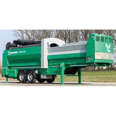 For higher throughput needs, the Primus is the next step up. Designed as a tandem central axle trailer, the Primus not only has 172 ft2 / 16 m² of effective screening area, it also offers a screen length able to handle big jobs. Heavy-duty components, manually folding discharge belts, the hydraulic drum drive via roller chain "drum grip" and a fuel-efficient diesel unit give this machine an excellent price/ performance ratio. Options are available that allow users to configure the machine for their specific requirements. The Primus is the right solution for smaller and mid-sized composting plants, as well as for getting into contract screening.