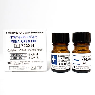Biochemical Diagnostics DETECTABUSE® STAT-SKREEN® and DOA-SKREEN liquid urine controls are designed to monitor the performance of lateral flow, rapid disposable test devices. Designed to match most testing devices on the market, with formulations updated as market changes and new testing devices become available. Our STAT-SKREEN® has been the gold standard for testing since 1991 and are 510k, DEA exempt, and CE registered.