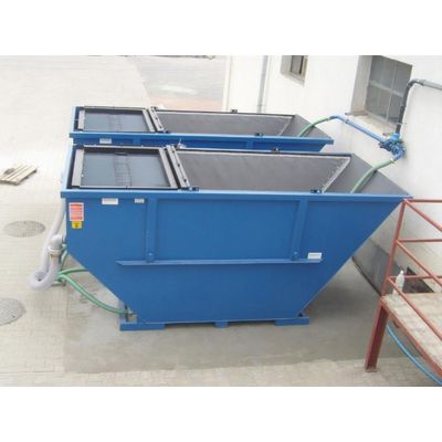 The EWC-Lamella is a fully assembled compact water clarification and sludge dewatering system and can (depending on the size up to 40 m³) be used for wastewater seeps up to 300 l / min as the core of an operating water cycle. Reusable process water and sludge thickening in one device. The patented Lamella EWC is a combination of dewatering container and lamellar inclined clarifier. The coarse filter separates the larger solids. The lamella separator separates the fines from the water. Instead of five different units only one container, small footprint, suitable for up to 30 m3 wastewater per hour.