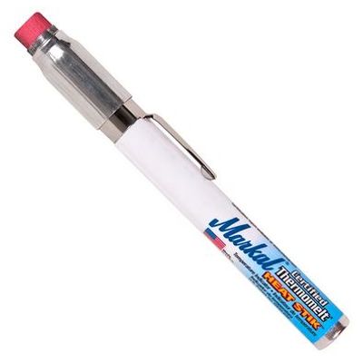 Pre-certified to meet nuclear and military low-corrosion specifications for stainless-steel fabrication and other super alloys, the Markal Certified Thermomelt HEAT-STIK is a quick method to accurately measure metal surface temperatures and equipment. The 20 available temperatures are lot traceable for jobsite documentation. Please note that the color of the Thermomelts are not a part of their function, since the temperature signal consists of melting. Indicator color is subject to change without notice.