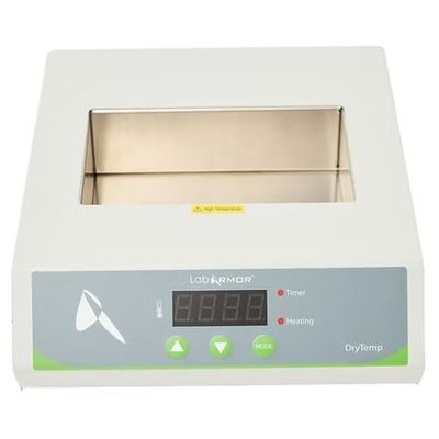 The Lab Armor DryTemp Bead Bath offers a digital dry bath solution designed for precise temperature and time control, negating the need for an external thermometer or timer. Its innovation lies in the use of Lab Armor Bead Boxes filled with beads instead of traditional aluminum blocks, allowing for versatile tube testing of various sizes. The system includes a built-in user recalibration function to ensure long-term temperature accuracy. Notably, removable Bead Boxes enable samples to remain heated outside the main unit, protecting them from water-borne contaminants and maintaining a dry and organized workspace. This energy-efficient bath features beads low in biocide use and fully recyclable materials, presenting an eco-friendly alternative that meets sustainable lab requirements. The dimensions at 8.7 x 10.3 x 3.2 inches externally and 3.25 x 5.5 x 2.5 inches internally accommodate dual Single Bead Boxes or a Double Bead Box, operating efficiently within a temperature range from ambient plus 5°C to 150°C with uniformity within +/- 0.2°C.