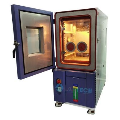 Hand-in Environmental Chamber simulates constant temperature and humidity environment for product testing, pre-conditioning and long time storage, it`s applicable for all kinds of electronic components and materials in high temperature, low temperature or damp heat environment. When you open the external insulated door, the inner glass door allows full-view of the workspace. It can be equipped with a wiper for the chamber with humidity function. There are two glove ports (Hand-in ports) that enable you to reach into a rubber seal and operate the specimen under testing.