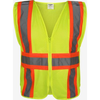Lakeland 4-Point Breakaway Public Safety Vests are designed with mesh fabric, and reflective material. VAMOSCGB is Class 2, in a 4-point breakaway style, open sides, and zipper closure. Available in Regular and Oversized, these vests are ideal for worker environments where visibility is important, and FR vests are not necessary.