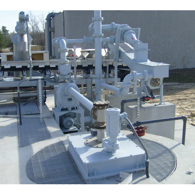 Efficiently remove inorganic grit from the treatment plant in a mechanically induced vortex environment. The SpiraGrit® efficiently removes grit over a wide range of daily flow rates. Rotating paddles maintain the flow velocity in the vortex chamber, keeping organics in suspension while allowing heavier grit to settle on the chamber floor. The settled grit moves across the floor and falls into the lower grit hopper. A grit pump sends the captured grit from the lower hopper to a Grit Classifier or Raptor® Grit Washer for separation and dewatering. The grit pump can be either an airlift pump, self-prime pump or a recessed impeller pump.