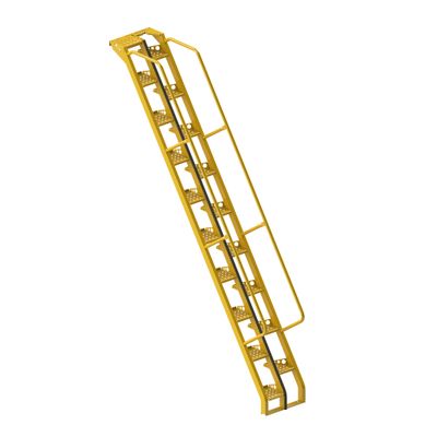 Industrial Stairs, 100″ Ht, 36″ Wd, Powder Coat Carbon Steel, Yellow, Bar Grating, 10 Steps.
