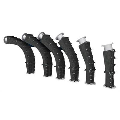 WP builds heavy duty flatback elbows for high and low pressure systems. These abrasion resistant elbows are used with systems handling large volumes of abrasive and corrosive materials. We select the right abrasion resistant material for your wearback and discharge transition applications. The flatback is designed to get material in and out of the elbow quickly and then deliver material into the center of the pipe at the discharge of the elbow.