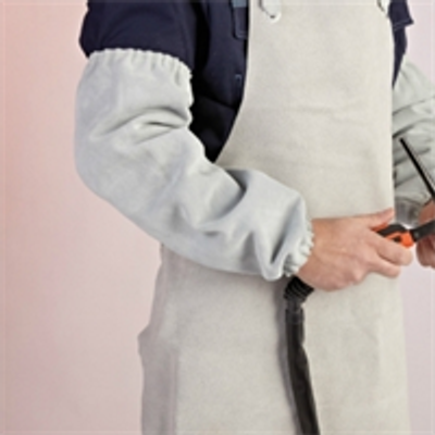 Sleeve in natural cow split leather, elastic band on both sides. 100% para-aramid sewing thread. Length 48 cm. Available with hook and loop fastener : reference MANC/C/EL/V.