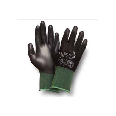 Seamless knitted glove, 13 gauge, in 100% black texturized polyamide, with elastane. Black CLEAN PU coating on palm and fingertips. Elastic wrist.